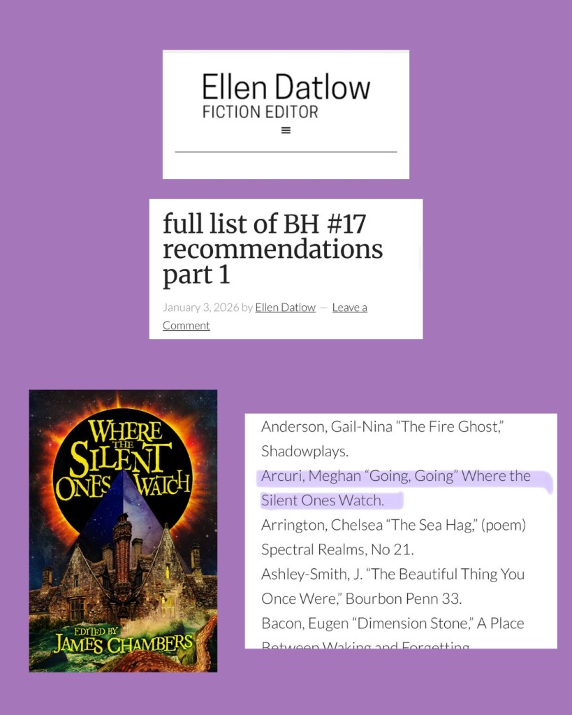 I’m excited my story, “Going, Going” is included on that list. It appears in the anthology Where the Silent Ones Watch, ed. James Chambers.